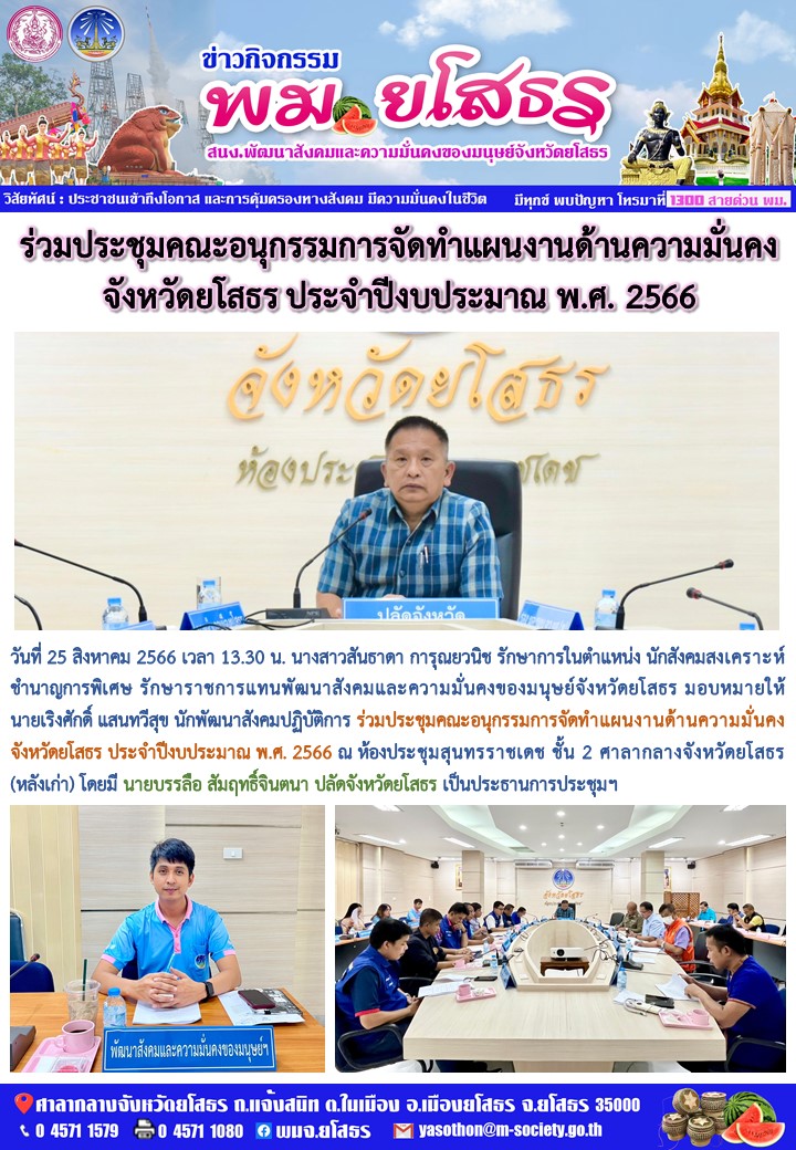 ร่วมประชุมคณะอนุกรรมการจัดทำแผนงานด้านความมั่นคงจังหวัดยโสธร ประจำปีงบประมาณ พ.ศ. 2566 (25 สิงหาคม 2566)