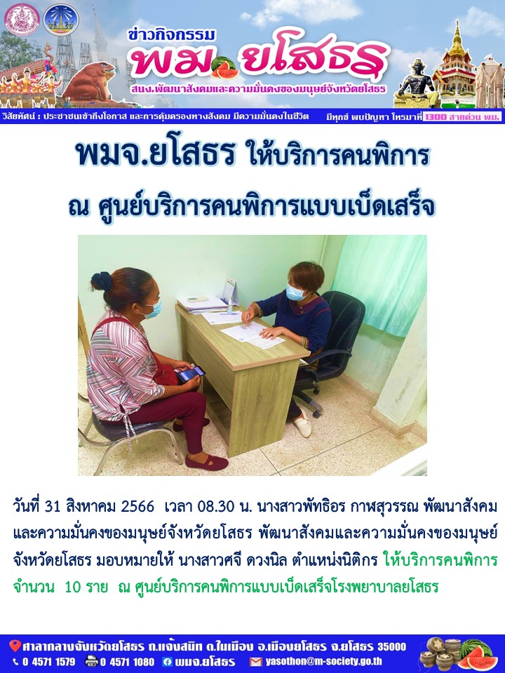ให้บริการคนพิการ ศูนย์บริการคนพิการแบบเบ็ดเสร็จ โรงพยาบาลยโสธร (31 สิงหาคม 2566)