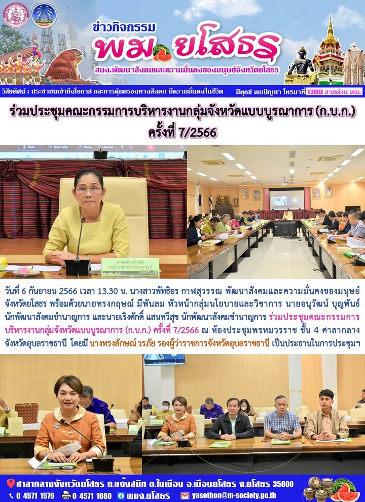ร่วมประชุมคณะกรรมการบริหารงานกลุ่มจังหวัดแบบบูรณาการ (ก.บ.ก.) ครั้งที่ 7/2566 (6 กันยายน 2566)