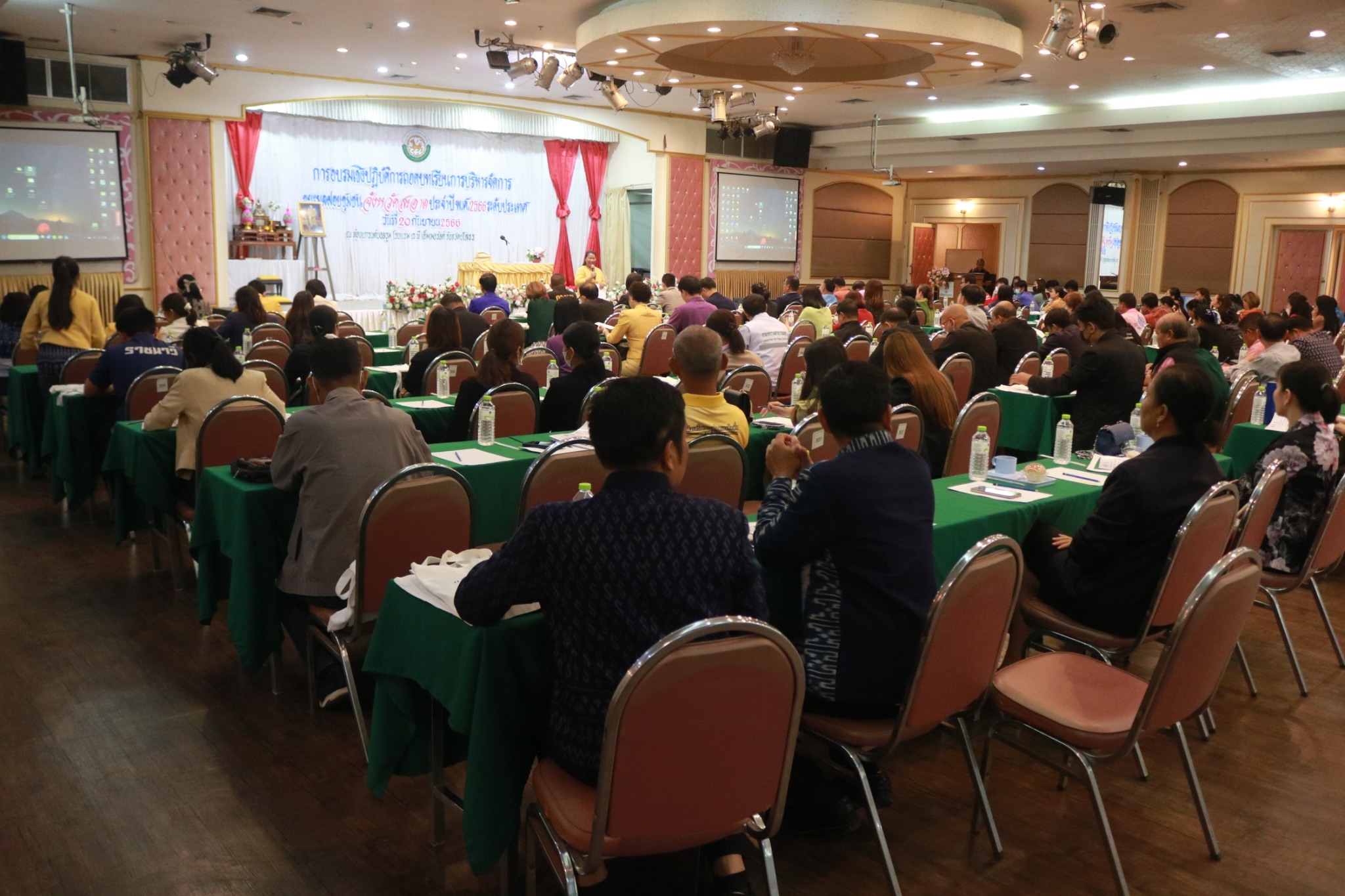 วันที่ 22 ก.ย. 2566 (09:21 น.)วันพุธที่ 20 กันยายน 2566 เวลา 09.30 น. นายพนมพร ชวนอุดม สวัสดิการและคุ้มครองแรงงานจังหวัดยโสธร มอบหมายให้ว่าที่ ร.ต.หญิง ดวงใจ โสภา นักจัดการงานทั่วไปปฏิบัติการ ร่วมอบรมเชิงปฏิบัติการถ่ายทอดบทเรียนการจัดการขยะมูลฝอย “จังหวัดสะอาด” ระดับประเทศ ประจำปี พ.ศ. 2566 จังหวัดยโสธร เพื่อเป็นการถ่ายทอดบทเรียนและขยายผลนวัตกรรมโดดเด่นด้านการบริหารจัดการขยะมูลฝอยชุมชนและการเป็น “จังหวัดสะอาด” อย่างยั่งยืน กลุ่มเป้าหมายประกอบด้วยหัวหน้าส่วนราชการ นายอำเภอทุกอำเภอ ภาคเอกชน สื่อมวลชน และภาคประชาชน โดยมีนายสุวัฒน์ เข็มเพชร รองผู้ว่าราชการจังหวัดยโสธร เป็นประธาน ณ ห้องแกรนด์บอลรูม โรงแรม เจ พี เอ็มเมอรัลด์ ตำบลในเมือง อำเภอเมืองยโสธร