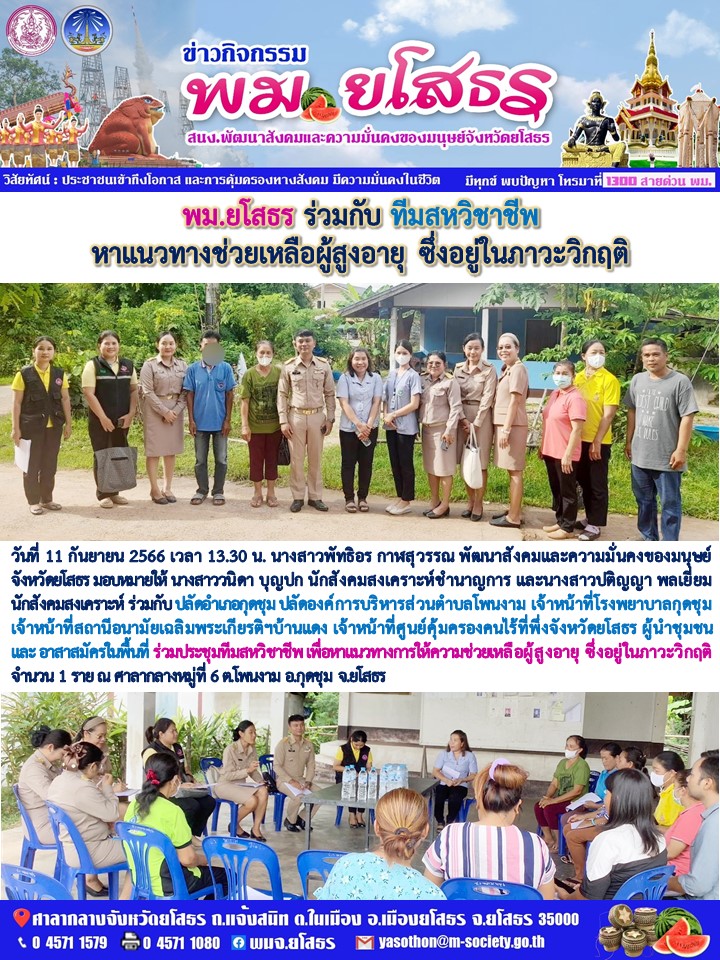 พม.ยโสธรร่วมประชุมทีมสหวิชาชีพ หาแนวทางการให้ความช่วยเหลือผู้สูงอายุ (11 กันยายน 2566)