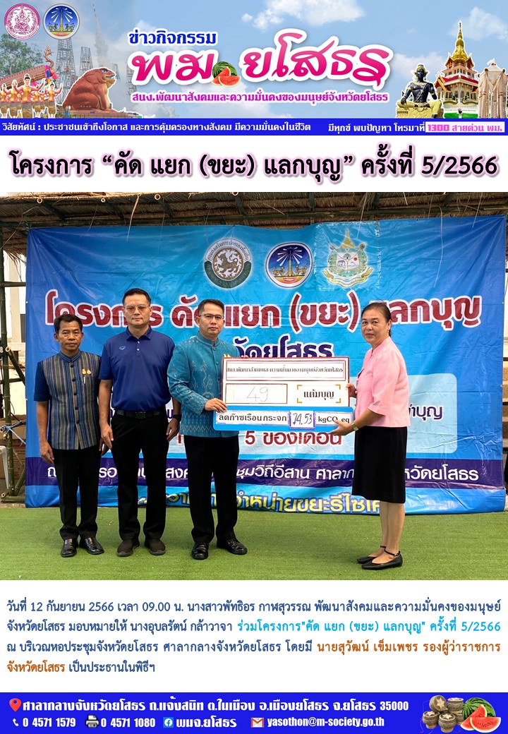 โครงการ"คัด แยก (ขยะ) แลกบุญ" ครั้งที่ 5/2566 (12 กันยายน 2566)