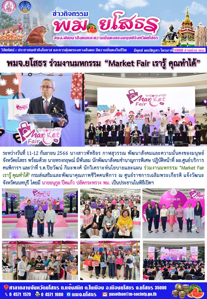 งานมหกรรม "Market Fair เรารู้ คุณทำได้" กรมส่งเสริมและพัฒนาคุณภาพชีวิตคนพิการ (12 กันยายน 2566)