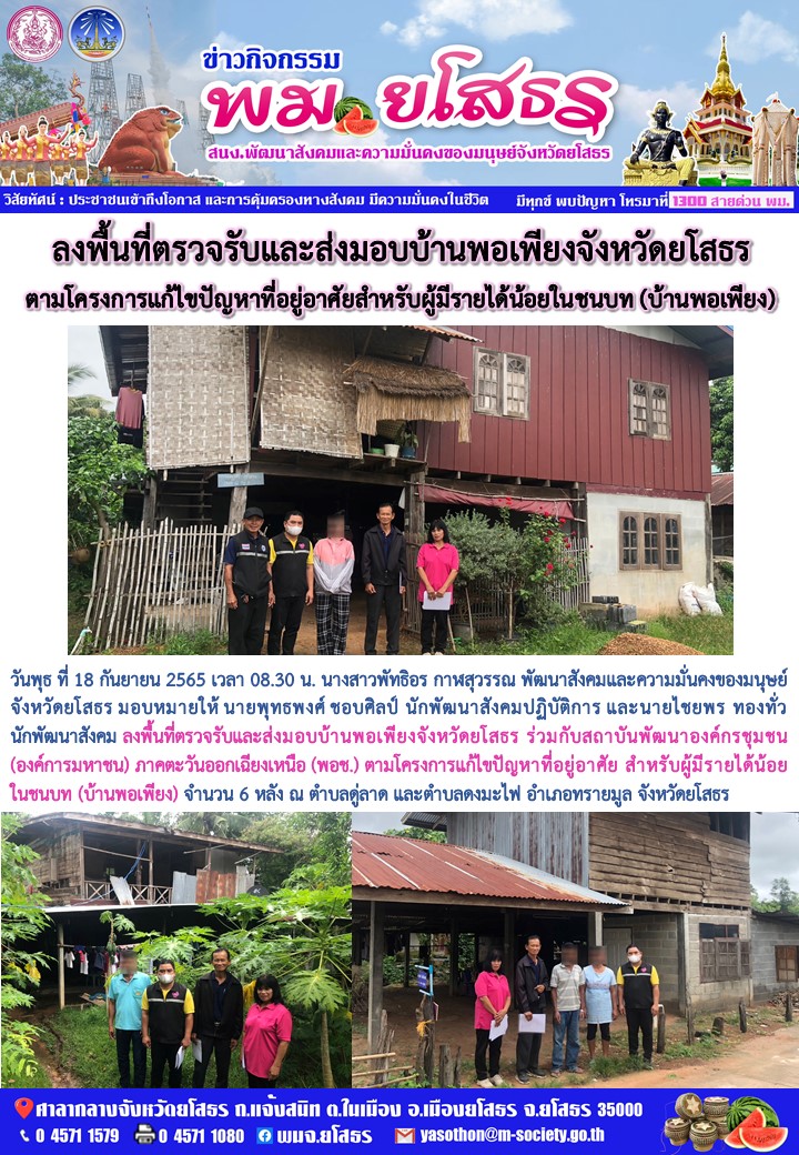 พมจ.ยโสธร ลงพื้นที่ตรวจรับและส่งมอบบ้านพอเพียงจังหวัดยโสธร (18 กันยายน 2566)