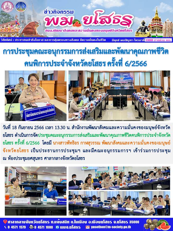 ประชุมคณะอนุกรรมการส่งเสริมและพัฒนาคุณภาพชีวิตคนพิการประจำจังหวัดยโสธร ครั้งที่ 6/2566 (18 กันยายน 2566)