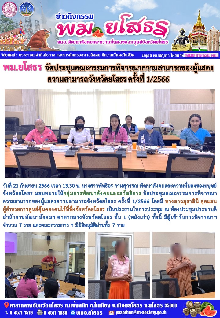 ประชุมคณะกรรมการพิจารณาความสามารถของผู้แสดงความสามารถจังหวัดยโสธร ครั้งที่ 1/2566 (21 กันยายน 2566)