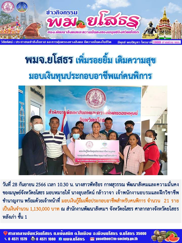 พมจ.ยโสธร มอบเงินกู้ยืมเพื่อประกอบอาชีพสำหรับคนพิการ (28 กันยายน 2566)
