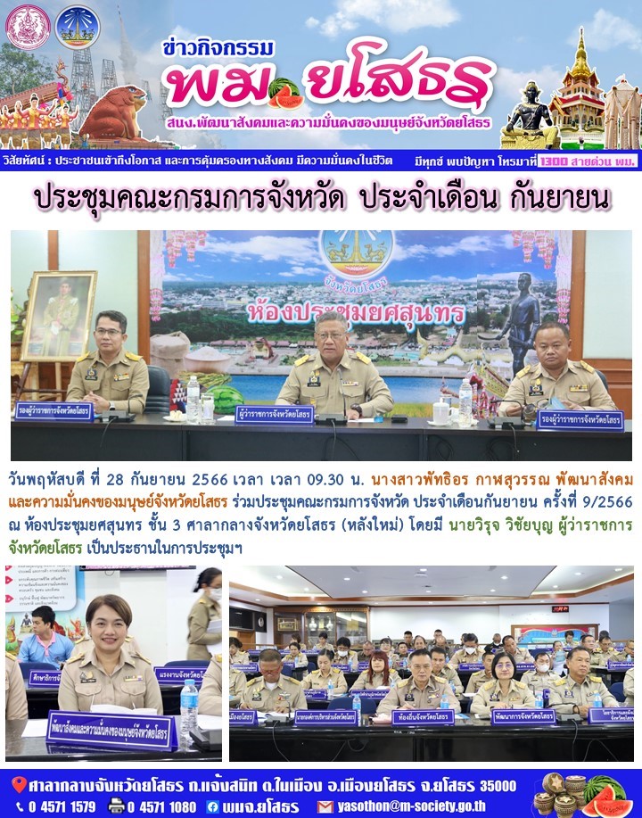 ร่วมประชุมคณะกรมการจังหวัด ประจำเดือนกันยายน ครั้งที่ 9/2566 (28 กันยายน 2566)