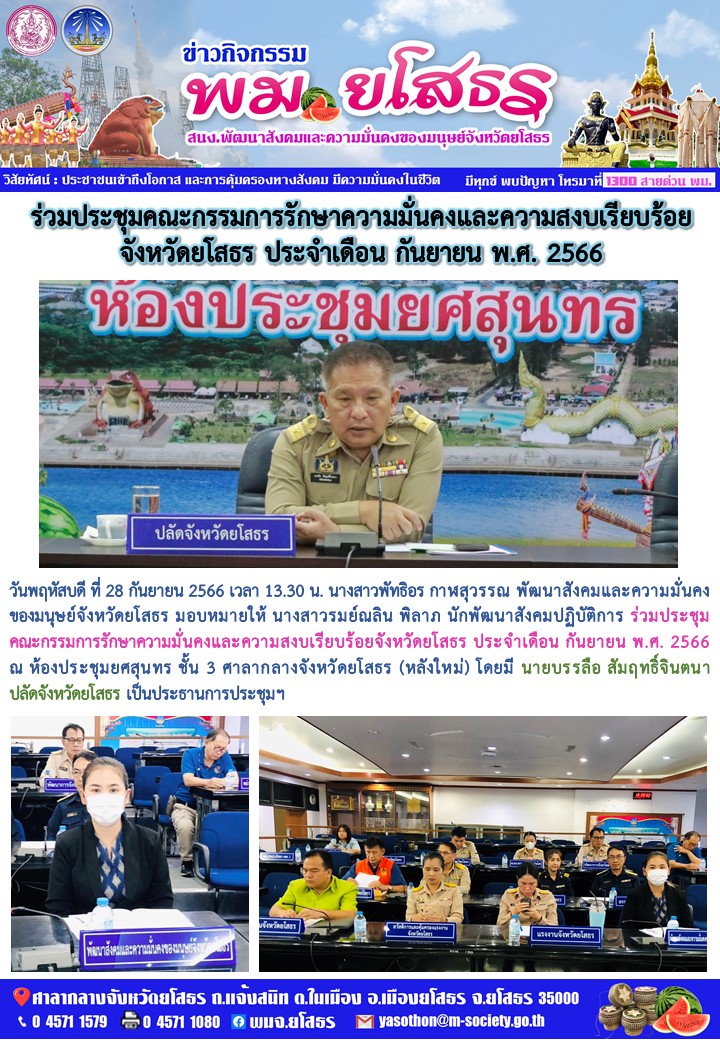 ร่วมประชุมคณะกรรมการรักษาความมั่นคงและความสงบเรียบร้อยจังหวัดยโสธร ประจำเดือน กันยายน พ.ศ. 2566 (28 กันยายน 2566)