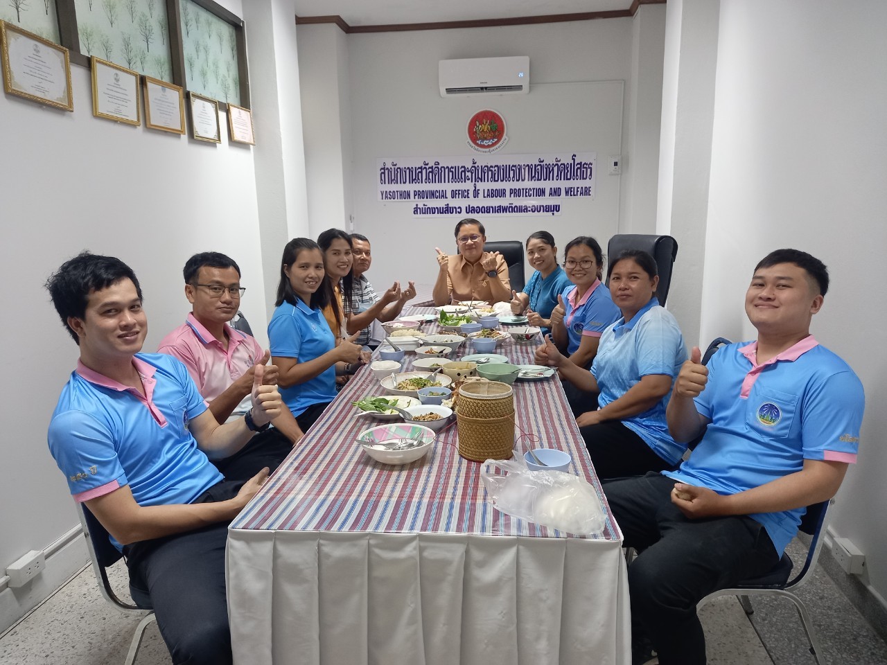 วันที่ 6 ต.ค. 2566 (08:45 น.)วันพฤหัสบดีที่ 5 ตุลาคม 2566 เวลา 12.00 น. สำนักงานสวัสดิการและคุ้มครองแรงงานจังหวัดยโสธร จัดกิจกรรม “สานสัมพันธ์ข้าวไม่ยากกับไม่แพง” รับประทานอาหารกลางวันร่วมกันที่มีโอกาส ซึ่งสำนักงานฯ ได้ดำเนินการเป็นประจำอย่างต่อเนื่อง