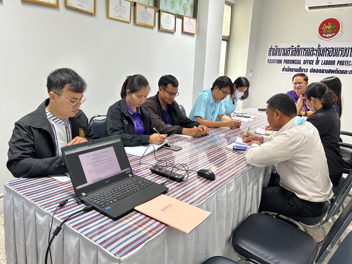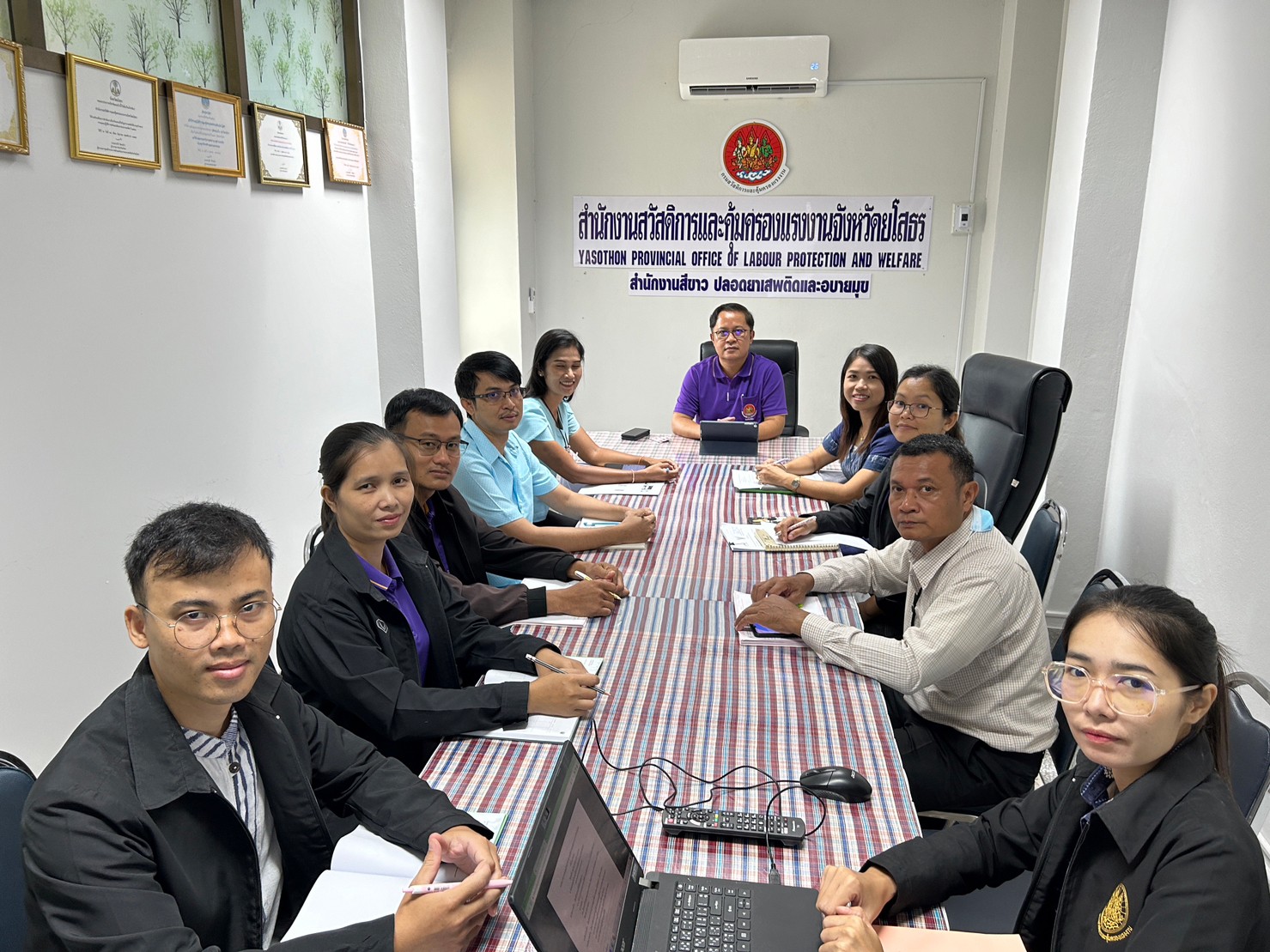วันที่ 6 ต.ค. 2566 (13:36 น.)วันศุกร์ที่ 6 ตุลาคม 2566 เวลา 09.30 น. สำนักงานสวัสดิการและคุ้มครองแรงงานจังหวัดยโสธรจัดประชุม เจ้าหน้าที่สำนักงานฯ ประจำเดือนตุลาคม 2566 (ครั้งที่ 10/2566) ณ ห้องประชุมสำนักงานสวัสดิการและคุ้มครองแรงงานจังหวัดยโสธร ทั้งนี้ มีนายพนมพร ชวนอุดม สวัสดิการและคุ้มครองแรงงานจังหวัดยโสธร เป็นประธานการประชุม และเจ้าหน้าที่เข้าร่วมประชุมโดยพร้อมเพรียงกัน เพื่อมอบแนวการปฏิบัติราชการ จากที่ประชุมกรมฯ และที่ประชุมคณะกรมการจังหวัด ติดตามผลการปฏิบัติงานตามตัวชี้วัด แผนการปฏิบัติ ราชการของกรมฯและแผนการปฏิบัติราชการของสำนักงานฯ ตลอดจนแลกเปลี่ยนเรียนรู้ ปัญหาและอุปสรรคที่พบในการทำงาน เพื่อร่วมกันแก้ไขปัญหา ซึ่งผลการปฏิบัติงานเป็นไปตามแผนการปฏิบัติราชการ และตามตัวชี้วัดการปฏิบัติราชการ
