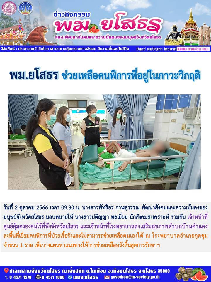 พม.ยโสธร ช่วยเหลือคนพิการที่อยู่ในภาวะวิกฤษติ (2 ตุลาคม 2566)