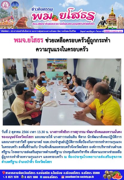 พมจ.ยโสธร ช่วยเหลือครอบครัวผู้ถูกกระทำความรุนแรงในครอบครัว (2 ตุลาคม 2566)