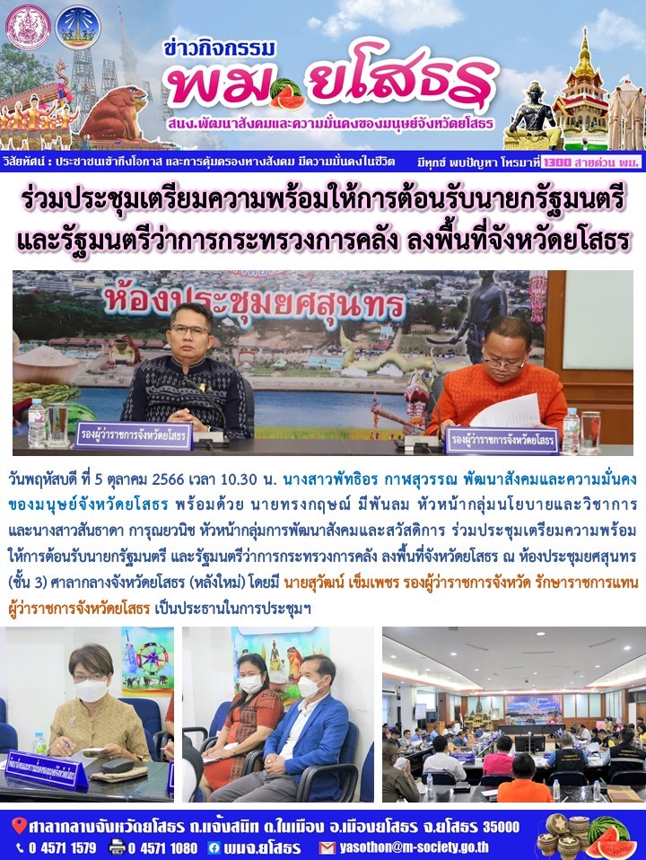 ร่วมประชุมเตรียมความพร้อมให้การต้อนรับนายกรัฐมนตรี และรัฐมนตรีว่าการกระทรวงการคลัง ลงพื้นที่จังหวัดยโสธร (5 ตุลาคม 2566)