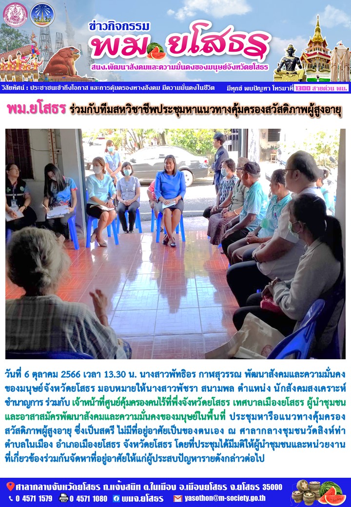 พม.ยดสธร ร่วมกับ สหวิชาชีพ ประชุมหารือแนวทางคุ้มครอง สวัสดิภาพผู้สูงอายุ (6 ตุลาคม 2566)