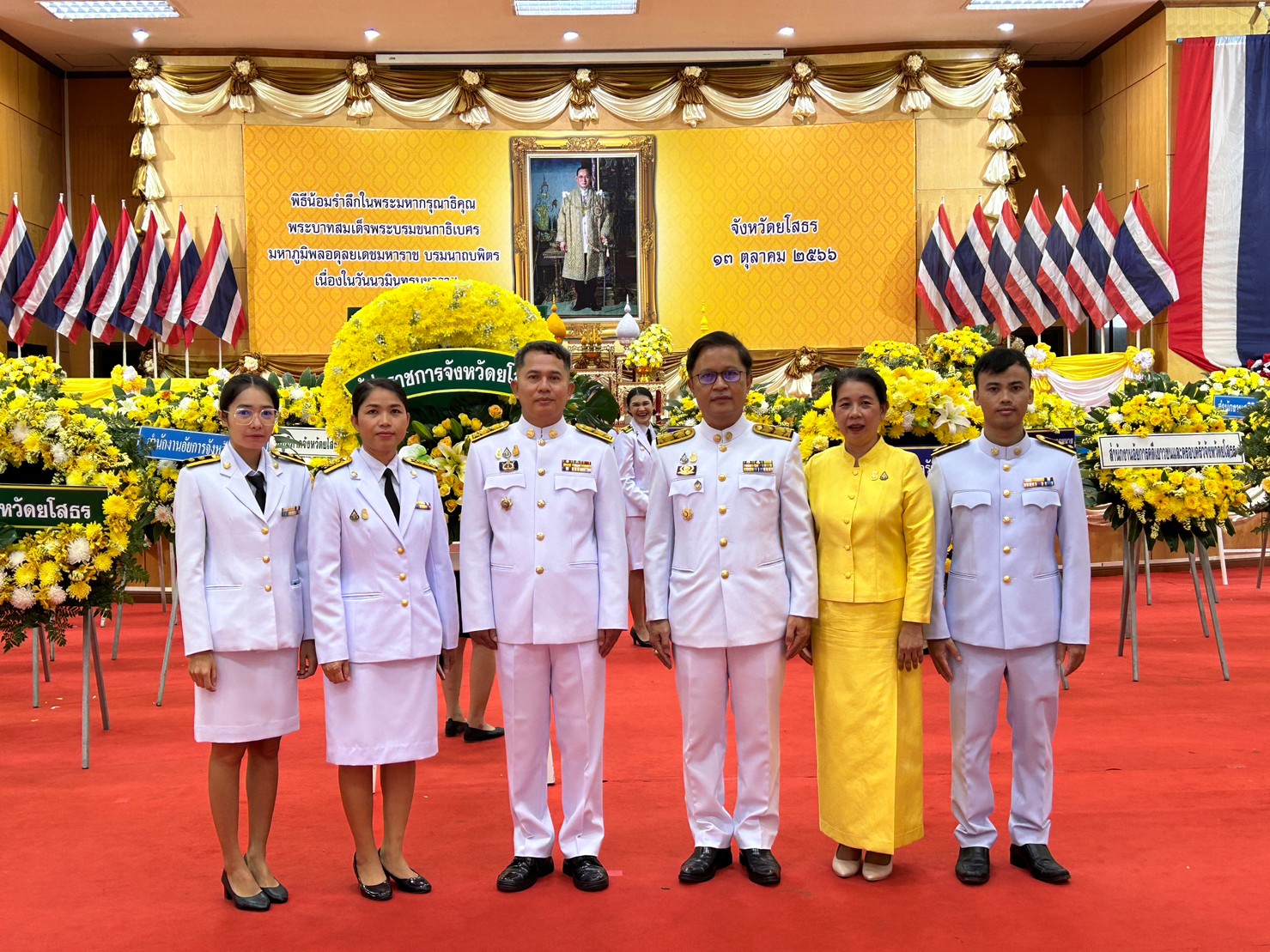 เวลา ๐๘.๓๐ น. ร่วมพิธีวางพวงมาลา ณ หอประชุมจังหวัดยโสธร