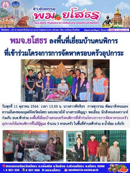 พมจ.ยโสธร ลงพื้นที่เยี่ยมบ้านคนพิการที่เข้าร่วมโครงการการจัดหาครอบครัวอุปการะ (11 ตุลาคม 2566)