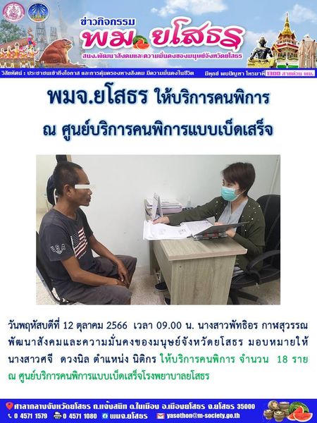 บริการคนพิการ ณ ศูนย์บริการคนพิการแบบเบ็ดเสร็จโรงพยาบาลยโสธร (12 ตุลาคม 2566)