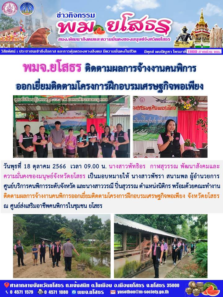 พมจ.ยโสธร ติดตามผลการจ้างงานคนพิการ ออกเยี่ยมติดตามโครงการฝึกอบรมเศรษฐกิจพอเพียง (18 ตุลาคม 2566)