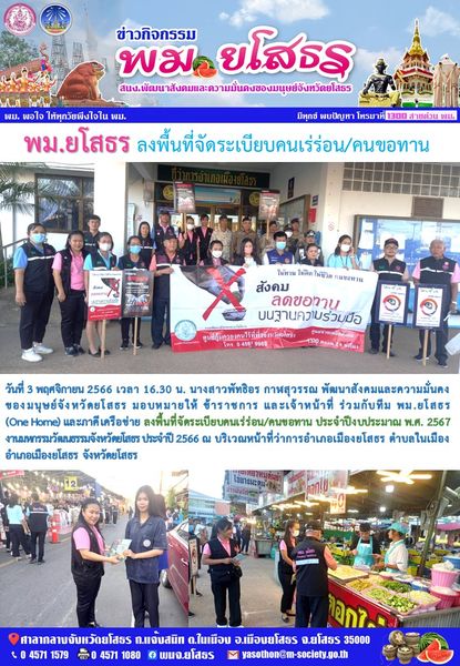 พม.ยโสธร งพื้นที่จัดระเบียบคนเร่ร่อน/คนขอทาน ประจำปีงบประมาณ พ.ศ. 2567 (3 พฤศจิกายน 2566)