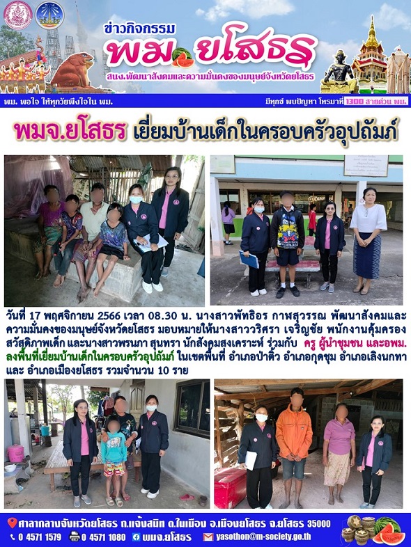 พมจ.ยโสธร ลงพื้นที่เยี่ยมบ้านเด็กในครอบครัวอุปถัมภ์ (17 พฤศจิกายน 2566)