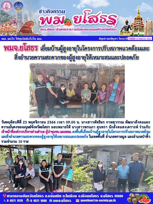 พมจ.ยโสธร พื้นที่เยี่ยมบ้านผู้สูงอายุในโครงการปรับสภาพแวดล้อมและสิ่งอำนวยความสะดวกของผู้สูงอายุ (23 พฤศจิกายน 2566)