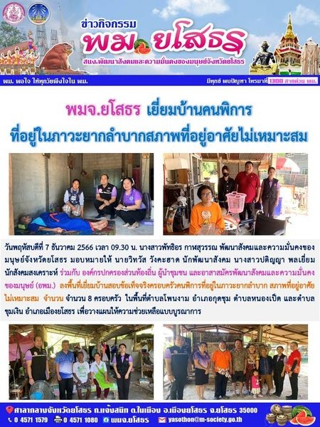 พมจ.ยโสธร ลงพื้นที่เยี่ยมบ้านสอบข้อเท็จจริงครอบคนพิการที่อยู่ในภาวะยากลำบาก สภาพที่อยู่อาศัยไม่เหมาะสม (7 ธันวาคม 2566)