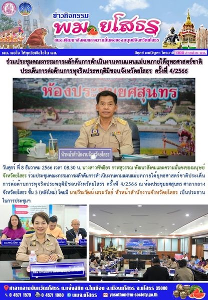 ประชุมคณะกรรมการผลักดันการดำเนินงานตามแผนแม่บทภายใต้ยุทธศาสตร์ชาติประเด็นการต่อต้านการทุจริตประพฤติมิชอบจังหวัดยโสธร ครั้งที่ 4/2566 (8 ธันวาคม 2566)