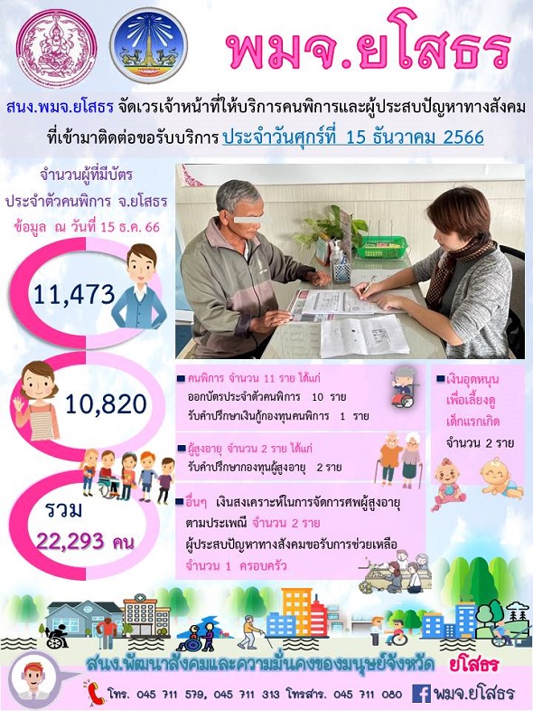 สนง.พมจ.ยโสธร จัดเวรเจ้าหน้าที่ให้บริการคนพิการและผู้ประสบปัญหาทางสังคม ที่เข้ามาติดต่อขอรับบริการ (15 ธันวาคม 2566)