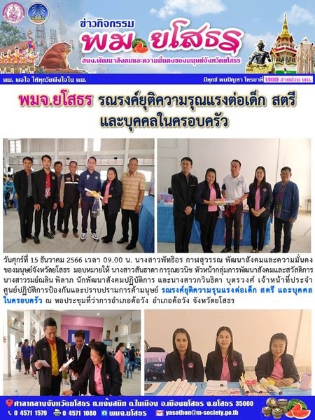 พมจ.ยโสธร รณรงค์ยุติความรุนแรงต่อเด็ก สตรี และบุคคลในครอบครัว (15 ธันวาคม 2566)