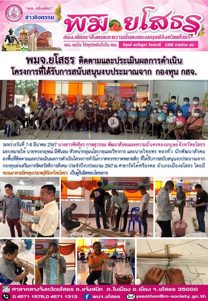พมจ.ยโสธร ลงพื้นที่ติดตามและประเมินผลการดำเนินโครงการที่ได้รับการสนับสนุนงบประมาณจากกองทุน กสจ. (8 มีนาคม 2567)