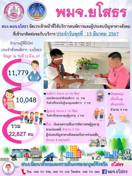 สนง.พมจ.ยโสธร จัดเวรเจ้าหน้าที่ให้บริการคนพิการและผู้ประสบปัญหาทางสังคม ที่เข้ามาติดต่อขอรับบริการ (13 มีนาคม 2567)