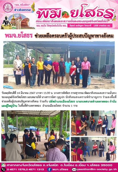 พมจ.ยโสธร ช่วยเหลือครอบครัวผู้ประสบปัญหาทางสังคม (14 มีนาคม 2567)