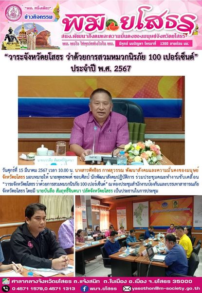 พมจ.ยโสธร ร่วมประชุมคณะทำงานขับเคลื่อน “วาระจังหวัดยโสธร ว่าด้วยการสวมหมวกนิรภัย 100 เปอร์เซ็นต์” (15 มีนาคม 2567)