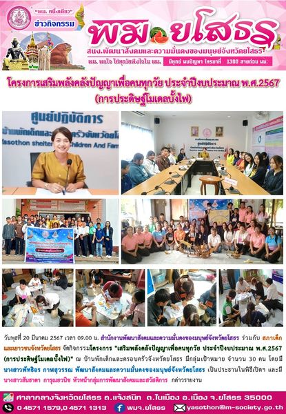 พมจ.ยโสธร จัดกิจกรรมโครงการ "เสริมพลังคลังปัญญาเพื่อคนทุกวัย ประจำปีงบประมาณ พ.ศ.2567 (20 มีนาคม 2567)