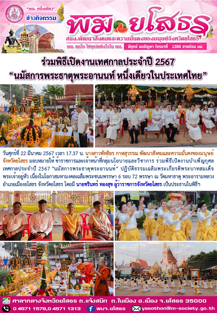 พมจ.ยโสธร ร่วมพิธีเปิดงานบำเพ็ญกุศลเทศกาลประจำปี 2567 "นมัสการพระธาตุพระอานนท์“ (22 มีนาคม 2567)