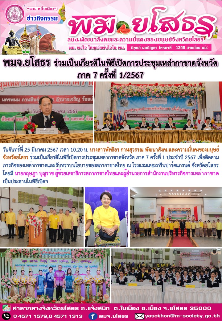 พมจ.ยโสธร ร่วมเป็นเกียรติในพิธีเปิดการประชุมเหล่ากาชาดจังหวัด ภาค 7 ครั้งที่ 1 ประจำปี 2567 (25 มีนาคม 2567)