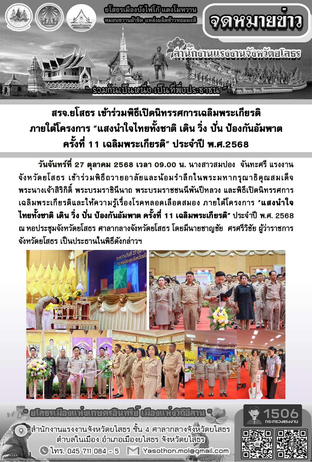 สรจ.ยโสธร เข้าร่วมพิธีเปิดนิทรรศการเฉลิมพระเกียรติ ภายใต้โครงการ “แสงนำใจไทยทั้งชาติ เดิน วิ่ง ปั่น ป้องกันอัมพาต ครั้งที่ 11 เฉลิมพระเกียรติ” ประจำปี พ.ศ.2568
