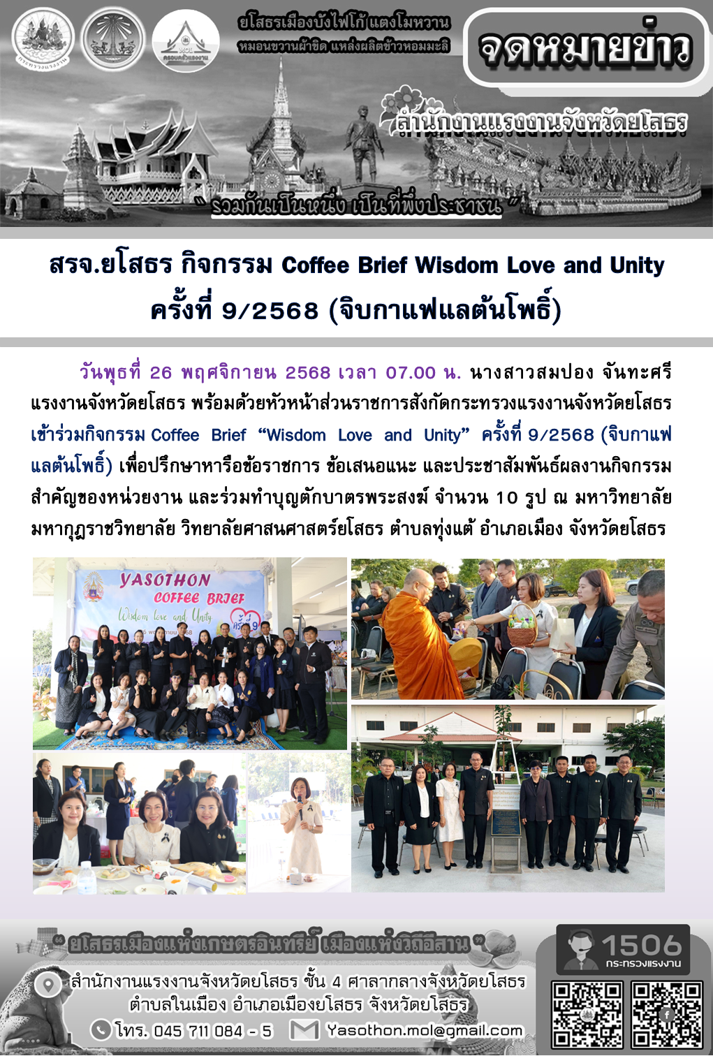 สรจ.ยโสธร กิจกรรม Coffee Brief Wisdom Love and Unity ครั้งที่ 9/2568 (จิบกาแฟแลต้นโพธิ์)