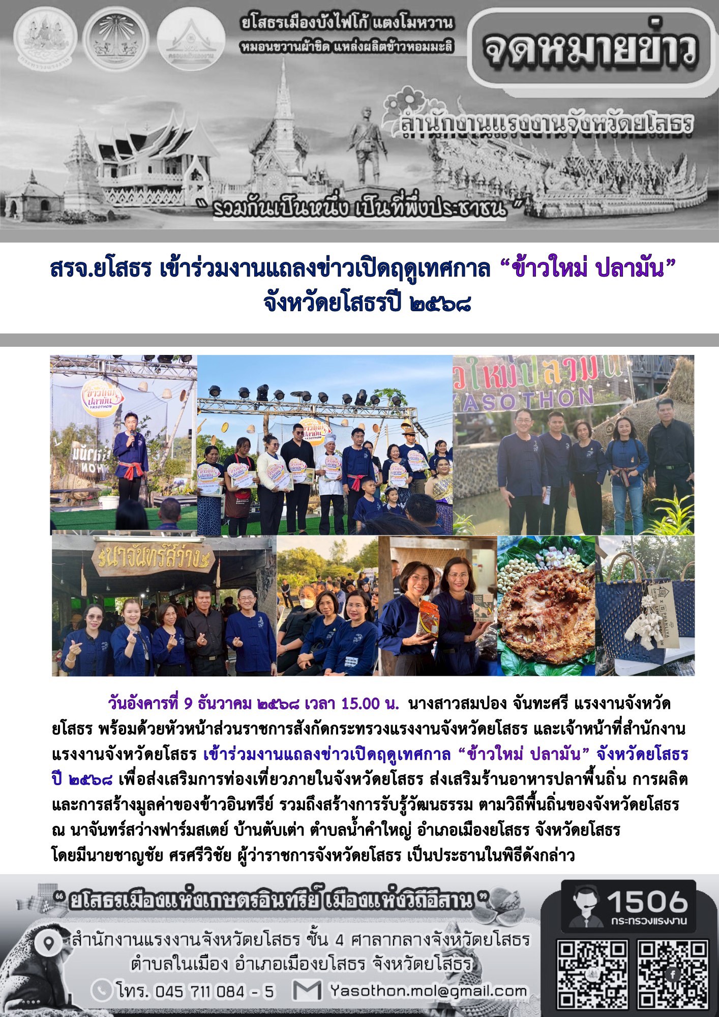 สรจ.ยโสธร เข้าร่วมงานแถลงข่าวเปิดฤดูเทศกาล “ข้าวใหม่ ปลามัน” จังหวัดยโสธรปี ๒๕๖๘