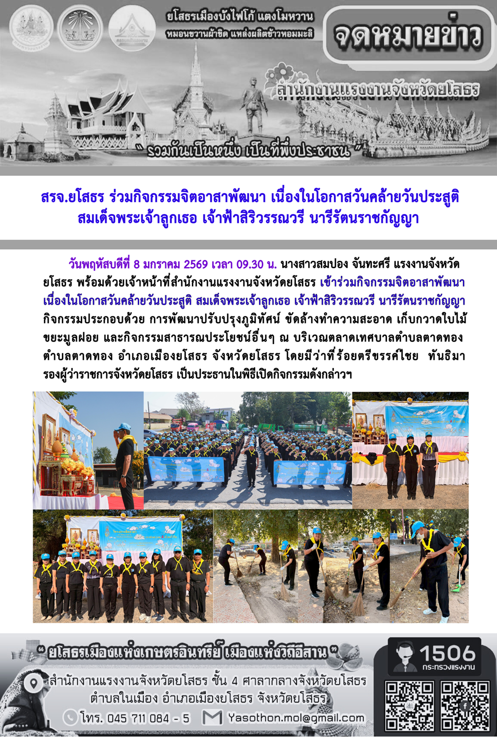 สรจ.ยโสธร ร่วมกิจกรรมจิตอาสาพัฒนา เนื่องในโอกาสวันคล้ายวันประสูติ สมเด็จพระเจ้าลูกเธอ เจ้าฟ้าสิริวรรณวรี นารีรัตนราชกัญญา