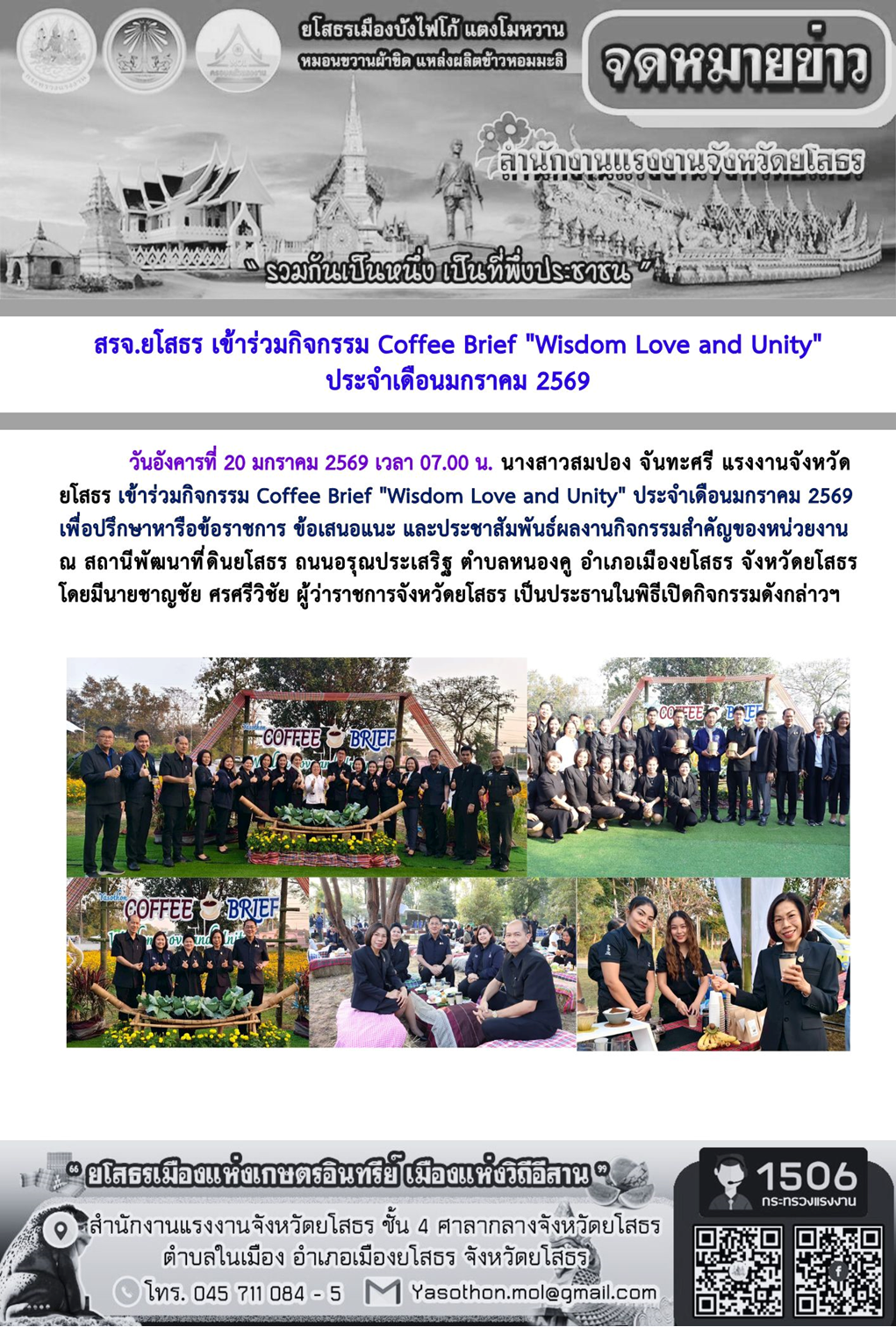 สรจ.ยโสธร เข้าร่วมกิจกรรม Coffee Brief "Wisdom Love and Unity" ประจำเดือนมกราคม 2569
