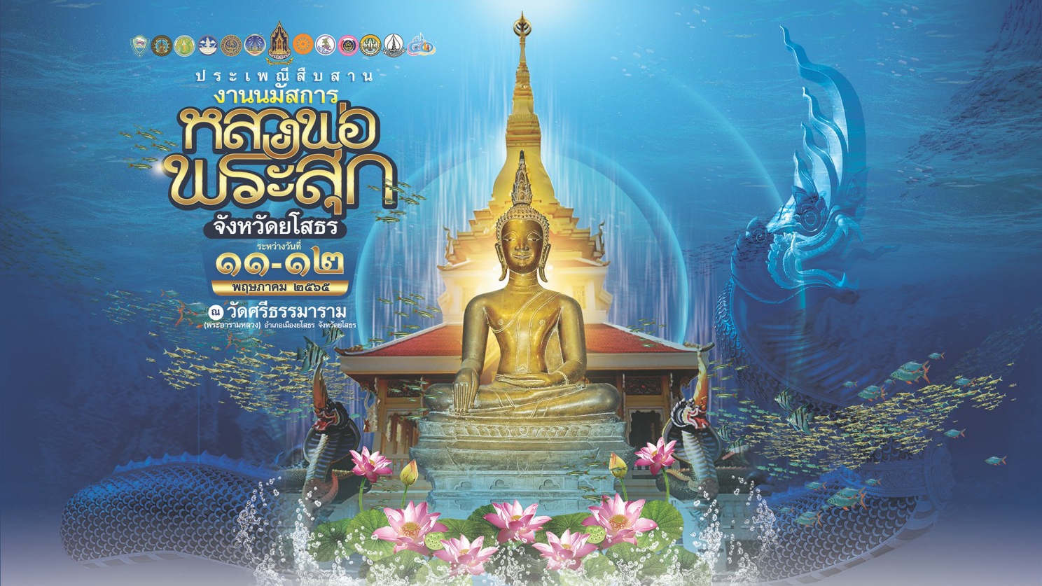 จังหวัดยโสธร โดยสำนักงานวัฒนธรรมจังหวัดยโสธร ขอเชิญร่วมสืบสาน รักษา ต่อยอด และยกระดับงานประเพณีสืบสานงานนมัสการหลวงพ่อพระสุก ประจำปี ๒๕๖๕