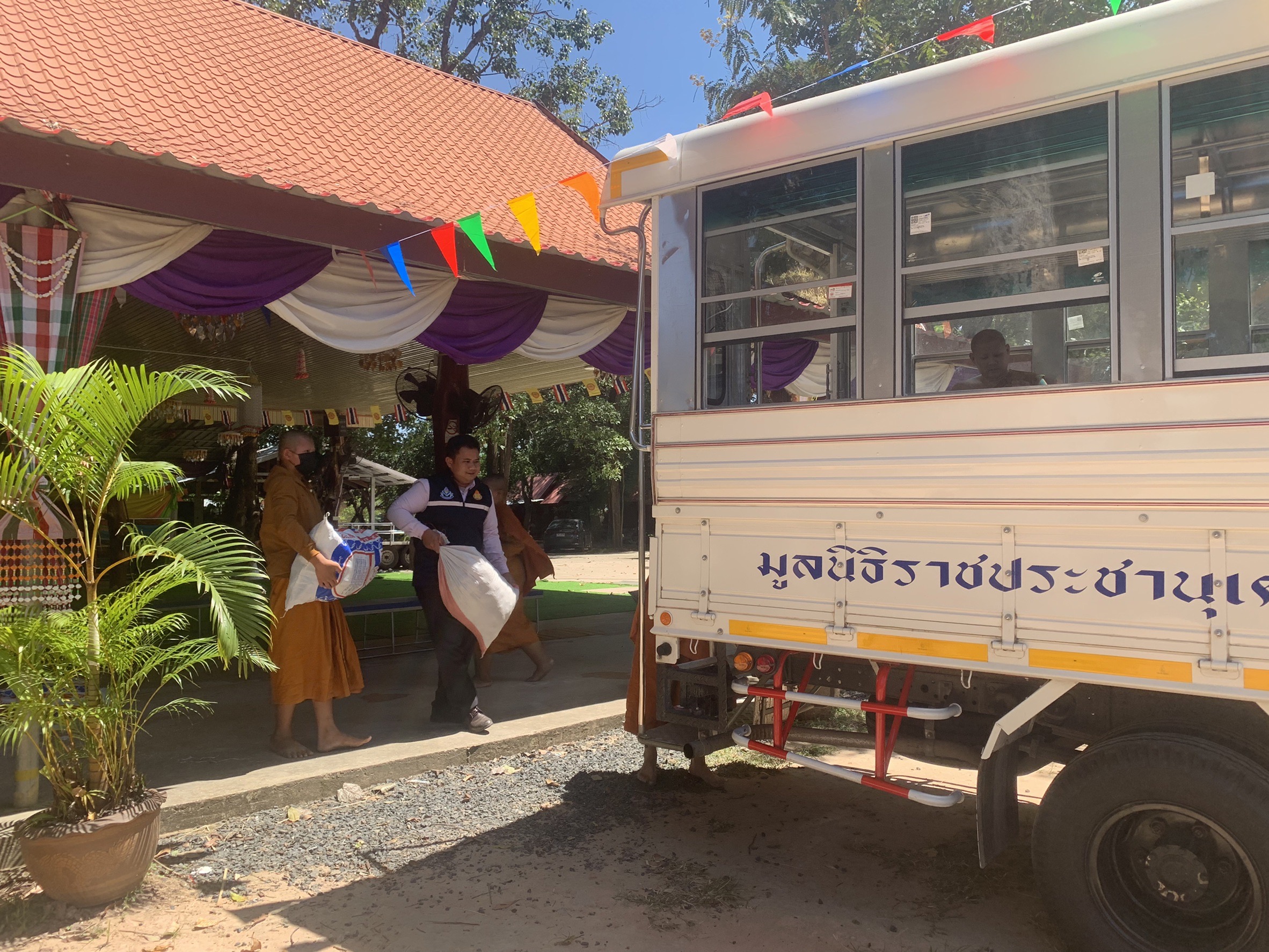 สำหรับสิ่งของตักบาตรในครั้งนี้ คณะสงฆ์ได้นำไปช่วยเหลือพี่น้องประชาชนที่ประสบภัยน้ำท่วมที่อำเภอราษีไศล จังหวัดศรีสะเกษ จังหวัดอุบลราชธานี และส่วนหนึ่งมอบให้นายอำเภอคำเขื่อนแก้วนำไปเยี่ยมเป็นกำลังใจให้กับผู้ป่วยติดเตียง และศูนย์พัฒนาเด็กเล็กในพื้นที่ด้วย