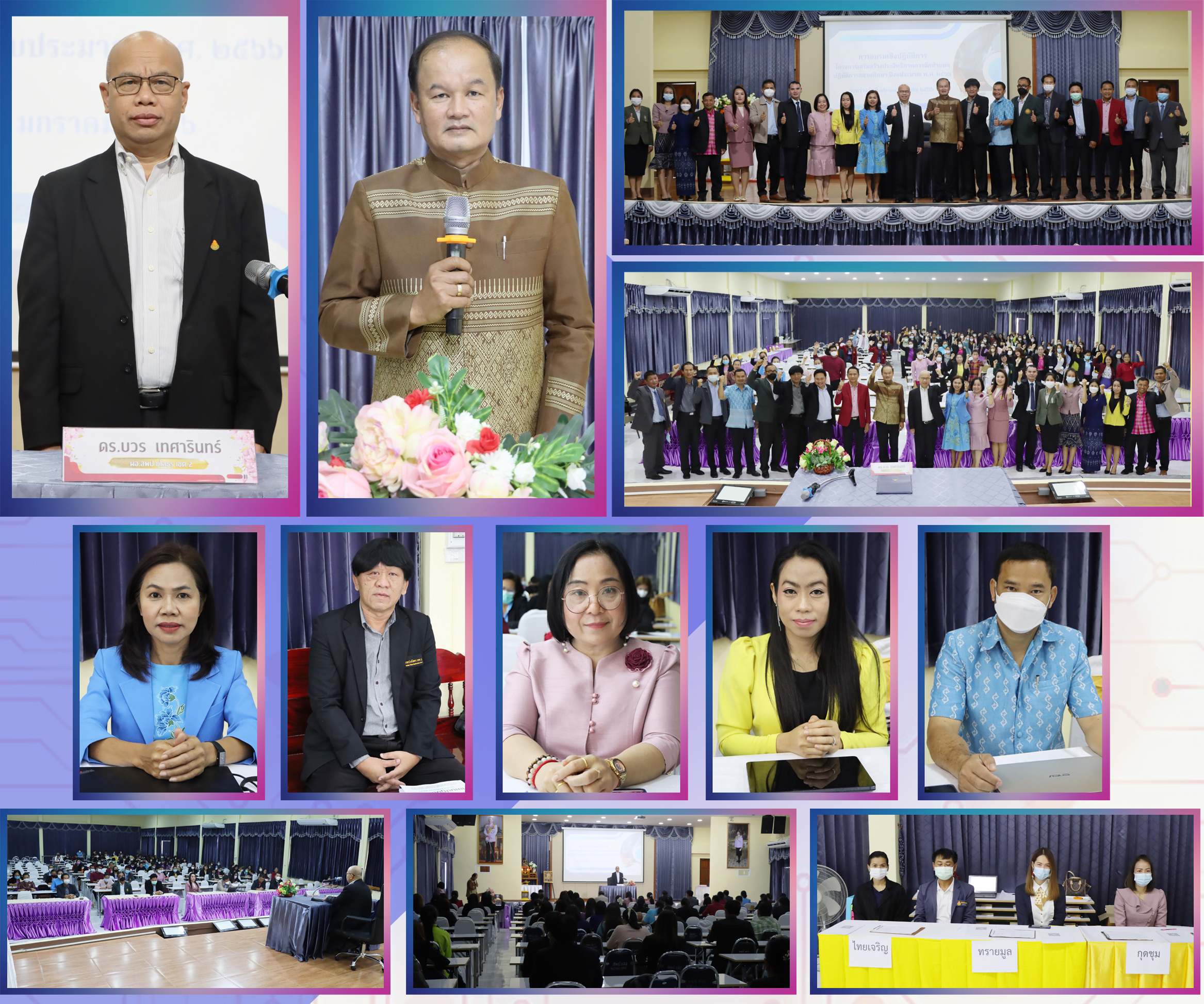วันที่ 13 ม.ค. 2566 (10:59 น.)วันที่ 13 มกราคม 2566 เวลา 09.00 น. นายบวร เทศารินทร์ ผอ.สพป.ยโสธร เขต 2 เป็นประธานเปิดการอบรมเชิงปฏิบัติการโครงการเสริมสร้างประสิทธิภาพการจัดทำแผนปฏิบัติการสถานศึกษา ปีงบประมาณ พ.ศ. 2566 รุ่นที่ 2 เพื่อให้โรงเรียนสามารถจัดทำแผนปฏิบัติการสถานศึกษา ได้ถูกต้อง และครบถ้วน โดยมี ว่าที่ร้อยเอก อมรรัตน์ ศรีขันธ์ รอง ผอ.สพป.ยโสธร เขต 2 นางอนุชิตา ภาระเวช ผอ.หน่วยตรวจสอบภายใน นายสมัย พรสินธุเศรษฐ์ ปฏิบัติหน้าที่ ผอ.กลุ่มนโยบายและแผน ศึกษานิเทศก์ ผู้อำนวยการโรงเรียน ข้าราชการครูและบุคลากรทางการศึกษา โรงเรียนในสังกัดอำเภอกุดชุม อำเภอไทยเจริญ และอำเภอทรายมูล เข้าร่วมในพิธี ณ หอประชุม สพป.ยโสธร เขต 2