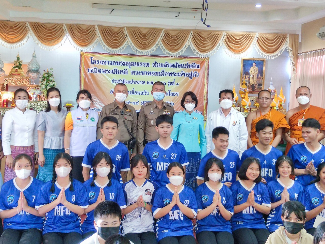 วันที่ 20 ม.ค. 2566 (10:55 น.)วันที่ ๑๘ มกราคม ๒๕๖๖ เวลา ๑๔.๓๐ น. นางยุพิน ภัทรกุลพงศ์ นายอำเภอคำเขื่อนแก้ว เป็นประธานพิธีปิดกิจกรรมโครงการอบรมคุณธรรม ต้นกล้าพลังแผ่นดิน เฉลิมพระเกียรติพระบาทสมเด็จพระเจ้าอยู่หัว ประจำปีงบประมาณ พ.ศ. ๒๕๖๖ รุ่นที่ ๑ อำเภอคำเขื่อนแก้ว จังหวัดยโสธร ณ โรงเรียนสมเด็จพระญาณสังวร ในพระสังฆราชูปถัมภ์ ซึ่งดำเนินการฝึกอบรมวันที่ ๑๗-๑๘ มกราคม ๒๕๖๖ รวมระยะเวลาฝึกอบรม ๒ วัน