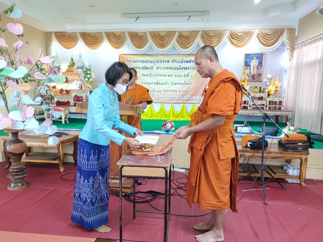 ในการนี้ นายอำเภอคำเขื่อนแก้ว ได้ถวายเกียรติบัตรแก่คณะพระวิทยากร มอบเกียรติบัตรแก่ผู้บริหาร คณะครู นักเรียนผู้ผ่านการฝึกอบรมฯ จำนวน ๑๕๗ คน และได้ให้โอวาทแก่นักเรียน