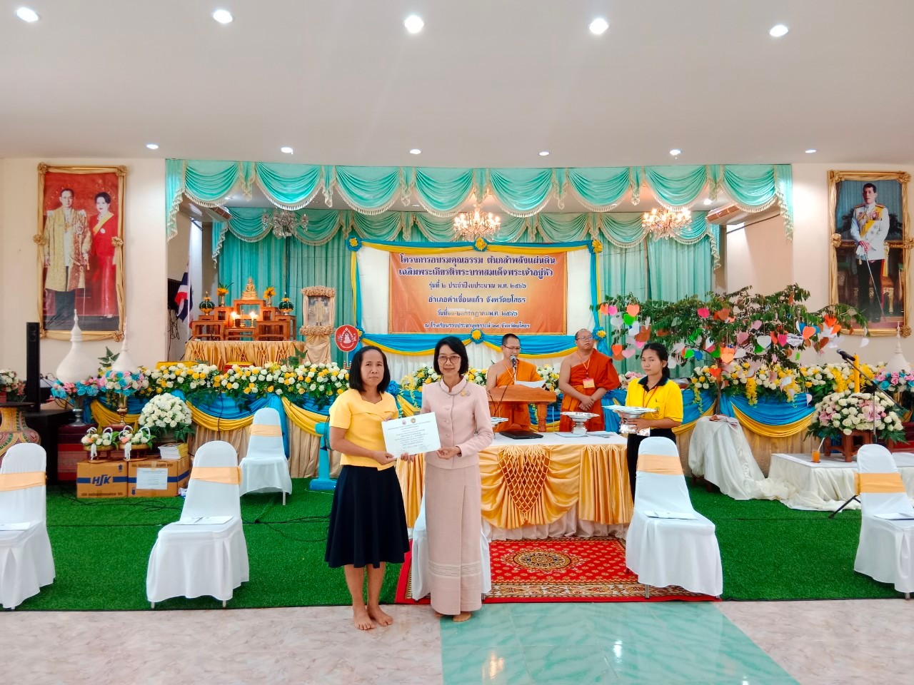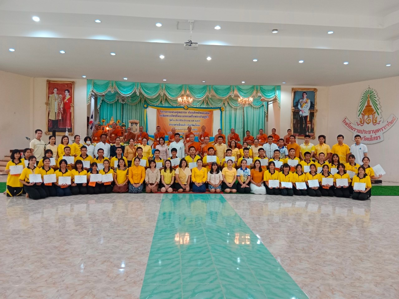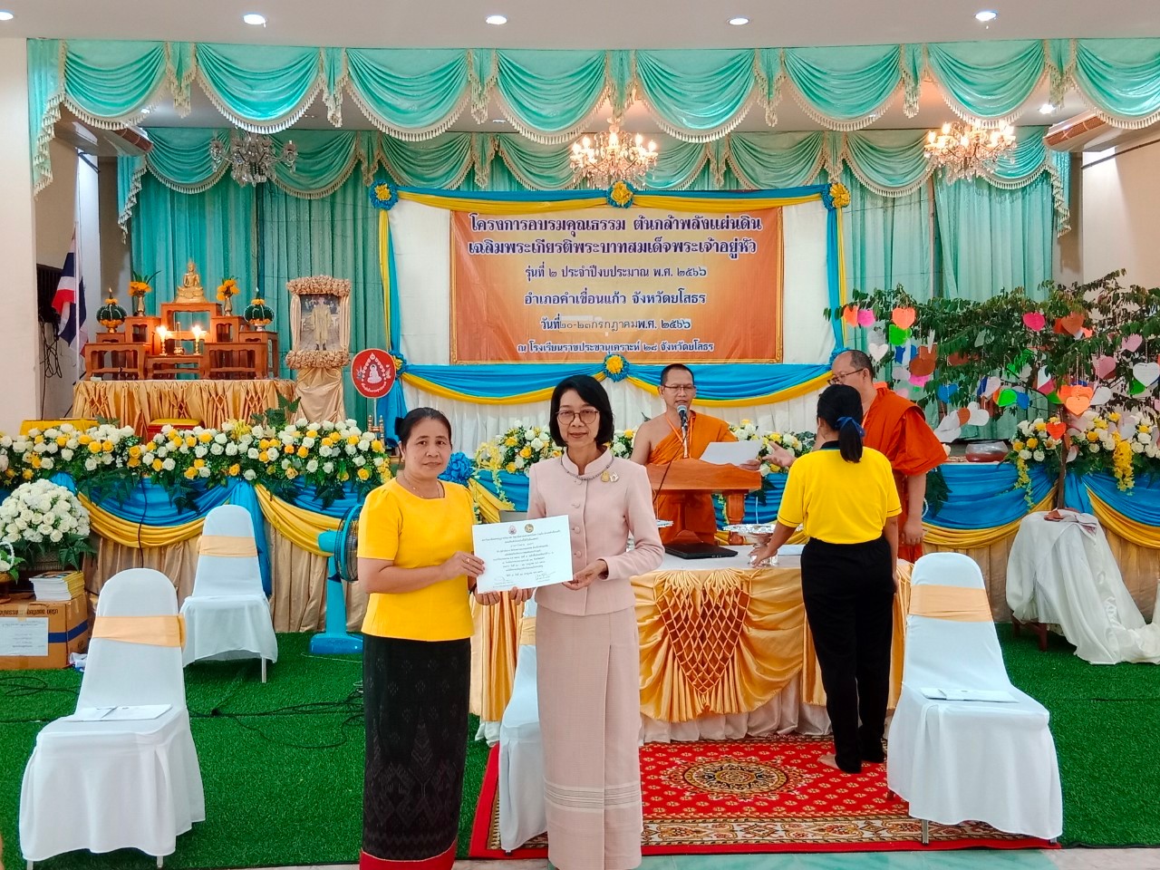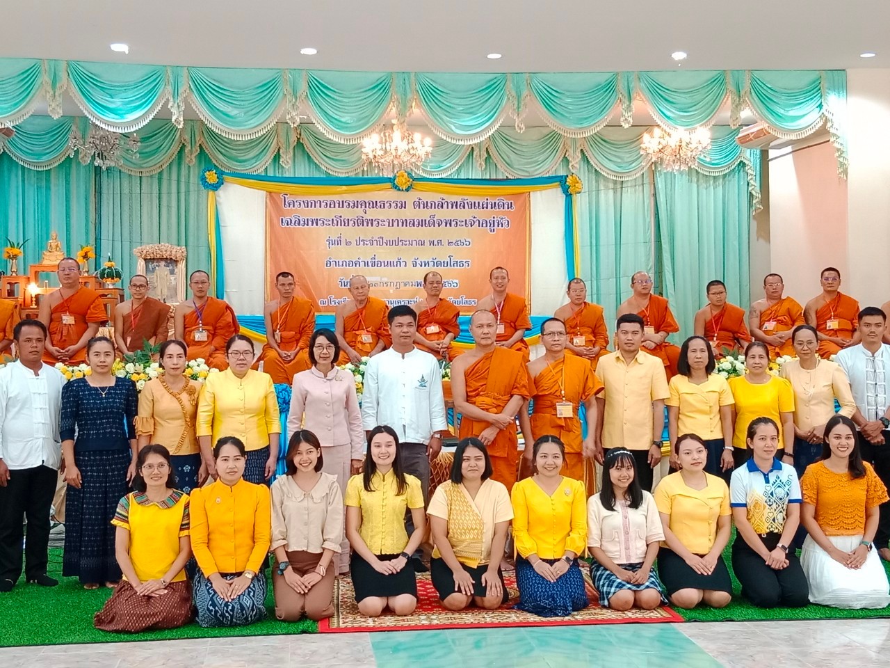 วันที่ 24 ก.ค. 2566 (18:20 น.)วันอาทิตย์ที่ ๒๓ กรกฎาคม ๒๕๖๖ เวลา ๐๗.๐๐ น. นางยุพิน ภัทรกุลพงศ์ นายอำเภอคำเขื่อนแก้ว ร่วมกิจกรรมตักบาตรสาธิตเชิงปฏิบัติการจริง ในกิจกรรมโครงการอบรมคุณธรรม ต้นกล้าพลังแผ่นดิน เฉลิมพระเกียรติพระบาทสมเด็จพระเจ้าอยู่หัว ประจำปีงบประมาณ พ.ศ. ๒๕๖๖ อำเภอคำเขื่อนแก้ว จังหวัดยโสธร รุ่นที่ ๒ ซึ่งดำเนินการฝึกอบรมระหว่างวันที่ ๒๐-๒๓ กรกฎาคม ๒๕๖๖ ณ หอประชุมยศสุนทร โรงเรียนราชประชานุเคราะห์ ๒๘ จังหวัดยโสธร ในการนี้ พระครูเมธีธรรมบัณฑิต เจ้าคณะอำเภอคำเขื่อนแก้ว ให้ความเมตตาเป็นประธานสงฆ์ มี พระครูวาปีธรรมวิโรจน์ เจ้าอาวาสวัดหนองเลิง พระวิทยากรจากมหาวิทยาลัยมกุฏราชวิทยาลัย วิทยาลัยศาสนศาสตร์ยโสธร และคณะสงฆ์อำเภอคำเขื่อนแก้ว ปลัดอำเภอ สมาชิกแม่บ้านมหาดไทยอำเภอคำเขื่อนแก้ว ผู้อำนวยการโรงเรียน คณะผู้บริหาร คุณครู และนักเรียนโรงเรียนราชประชานุเคราะห์ ๒๘ จังหวัดยโสธร ร่วมกิจกรรม