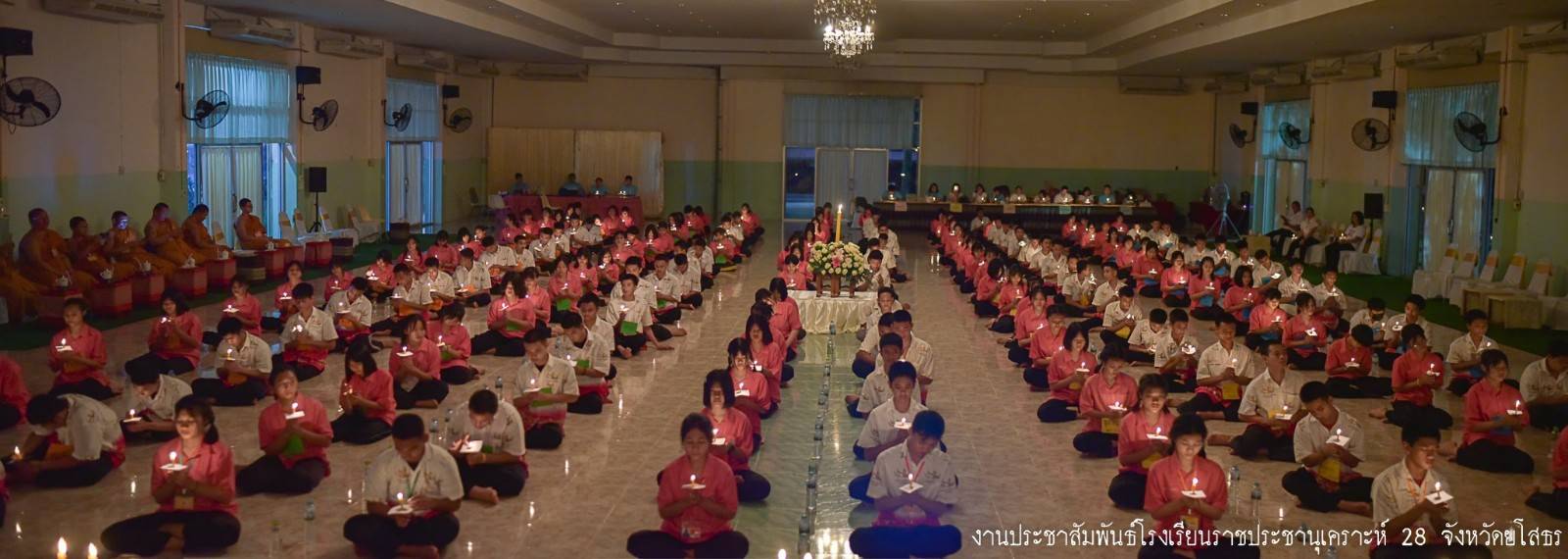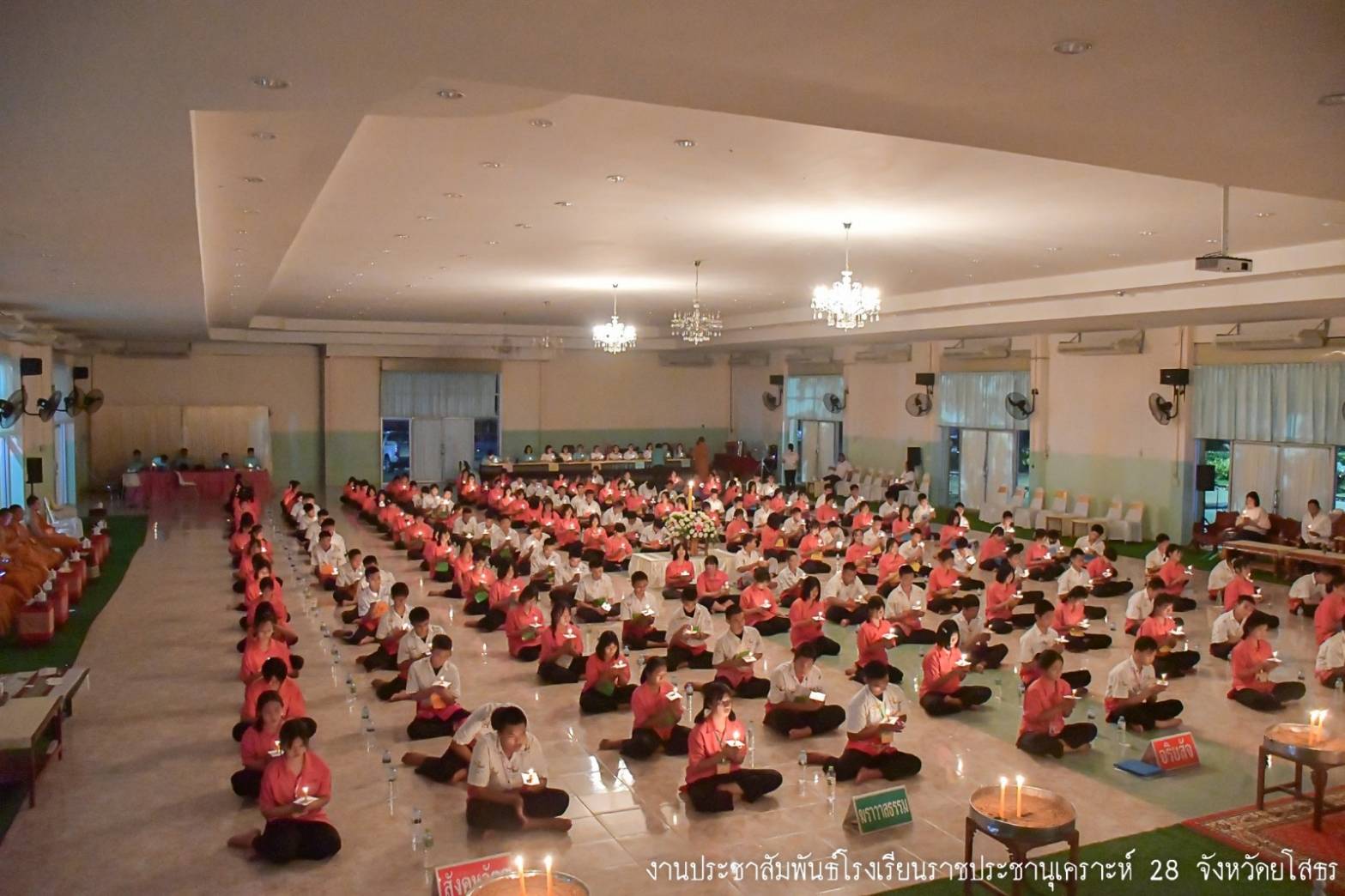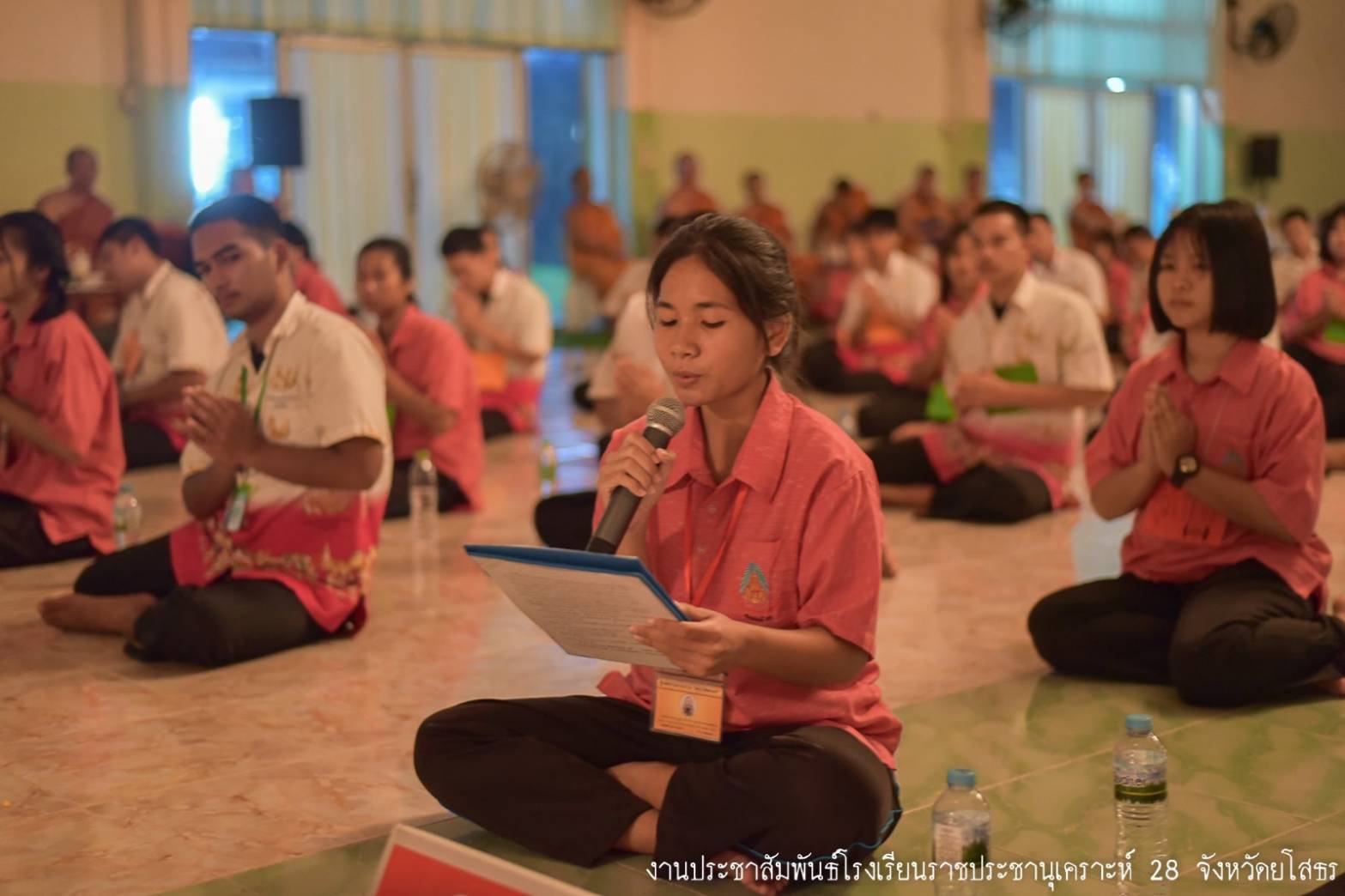 โดยมี พระครูวาปีธรรมวิโรจน์ เจ้าอาวาสวัดหนองเลิง พระวิทยากรจากมหาวิทยาลัยมกุฏราชวิทยาลัย วิทยาลัยศาสนศาสตร์ยโสธร และคณะสงฆ์อำเภอคำเขื่อนแก้ว ให้ความเมตตาเป็นพระวิทยากร มี ผู้อำนวยการโรงเรียน คณะผู้บริหาร คุณครู และนักเรียนโรงเรียนราชประชานุเคราะห์ ๒๘ จังหวัดยโสธร ร่วมกิจกรรม