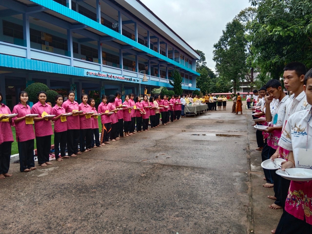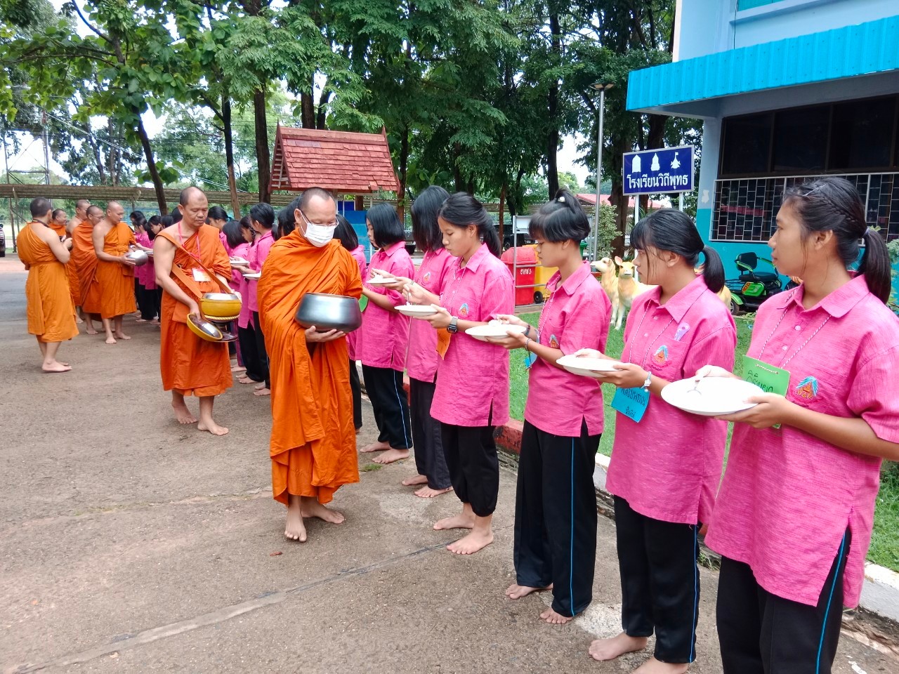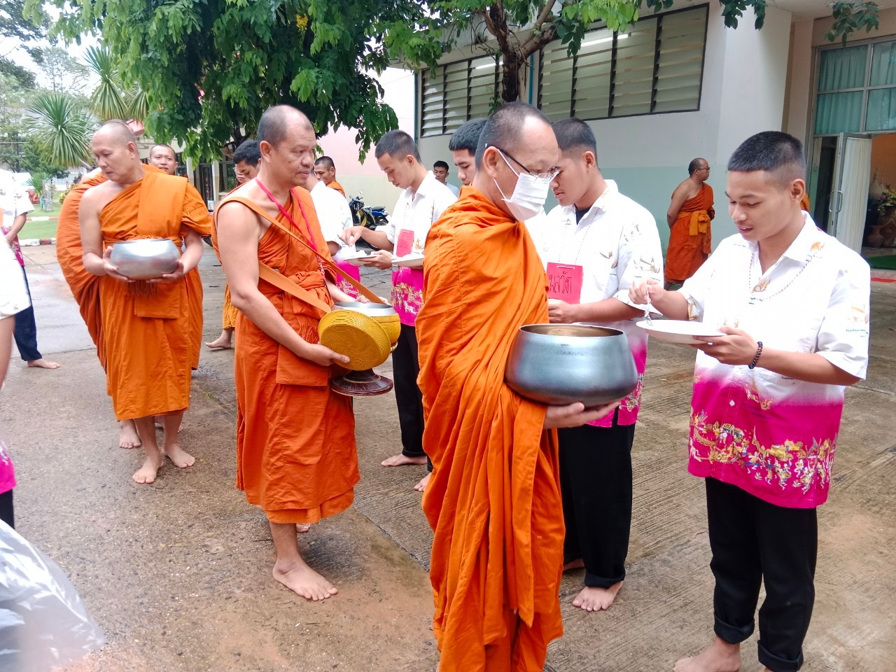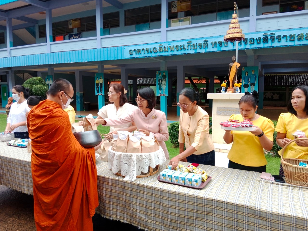 วันที่ 23 กรกฎาคม 2566 กิจกรรมตักบาตรสาธิตเชิงปฏิบัติการจริง ในกิจกรรมโครงการอบรมคุณธรรม ต้นกล้าพลังแผ่นดิน เฉลิมพระเกียรติพระบาทสมเด็จพระเจ้าอยู่หัว ประจำปีงบประมาณ พ.ศ. ๒๕๖๖